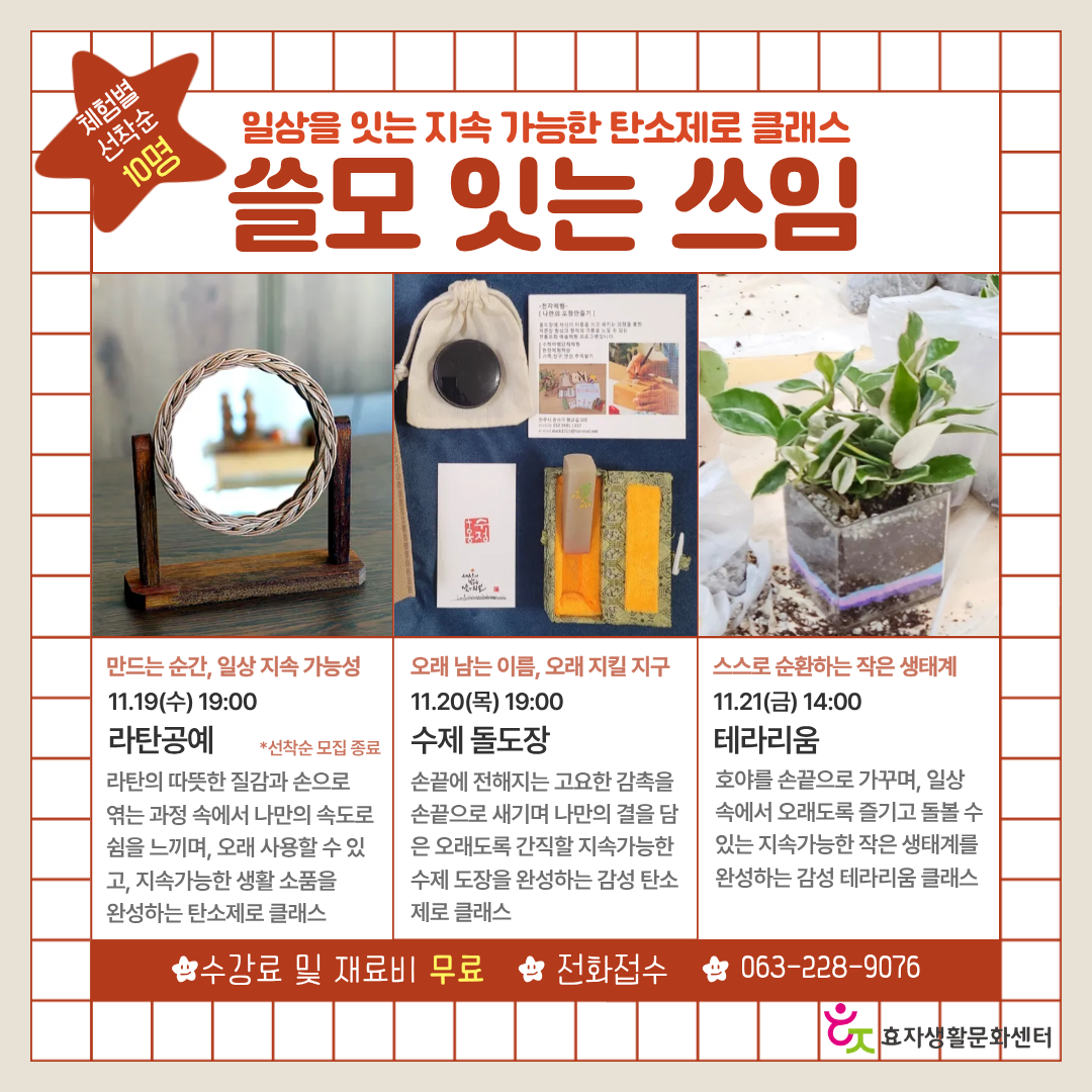 효자생활문화센터에서 '일상을 잇는 지속 가능한 탄소제로 클래스 : 쓸모 잇는 쓰임'을 진행합니다