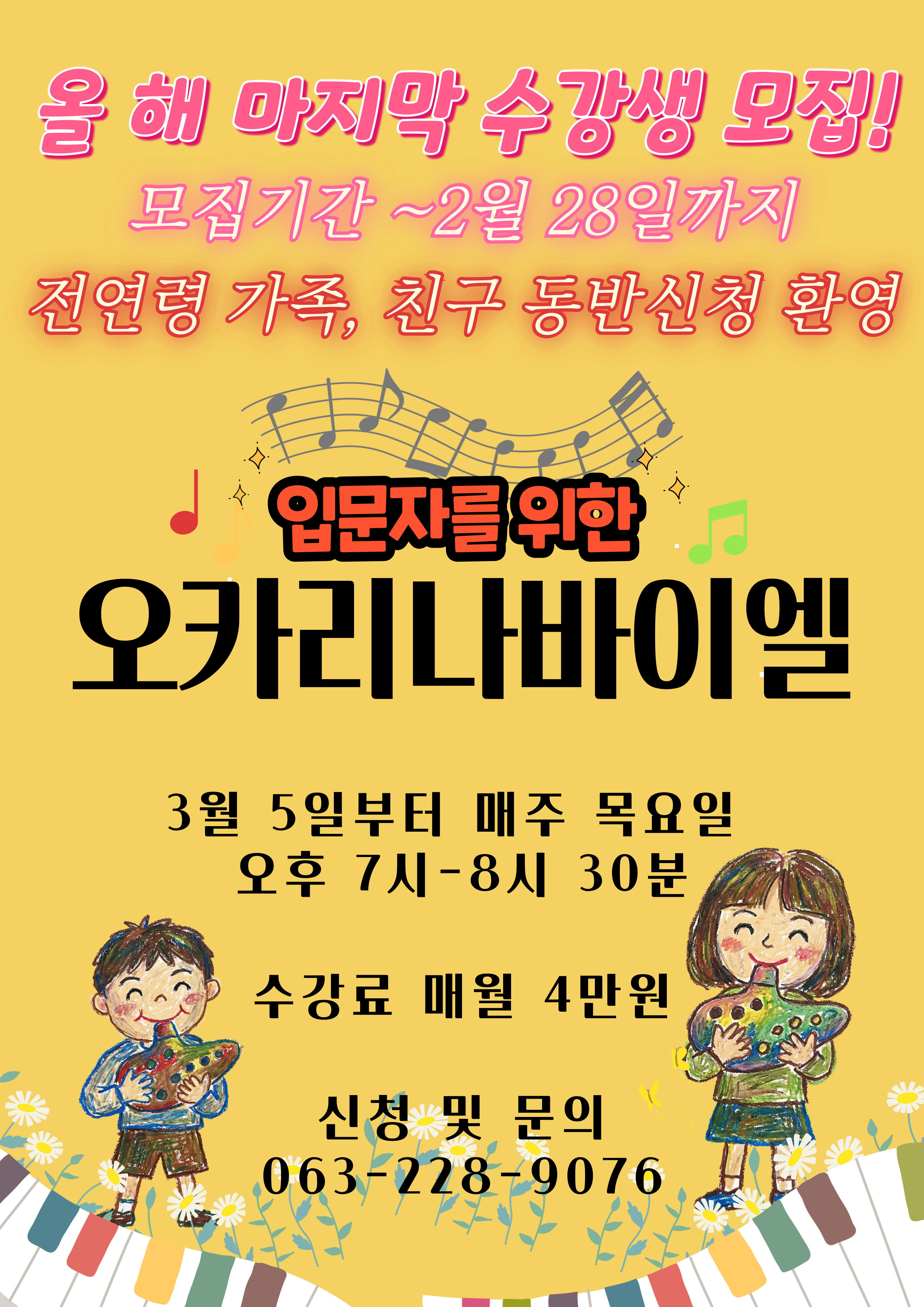2026 상설프로그램 오카리나 바이엘 수강생을 모집합니다