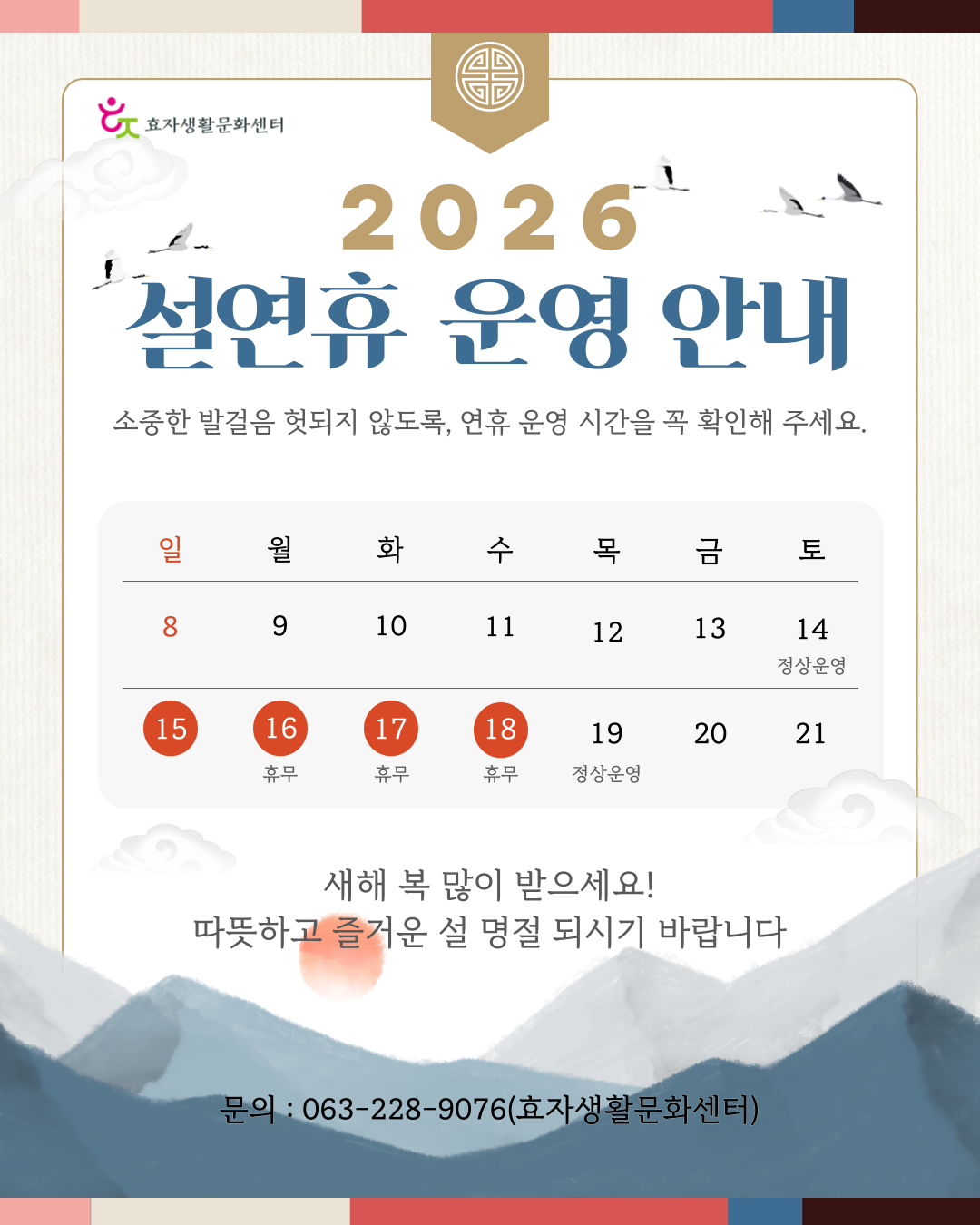 [휴관안내] 2026년 설 연휴 휴관 안내