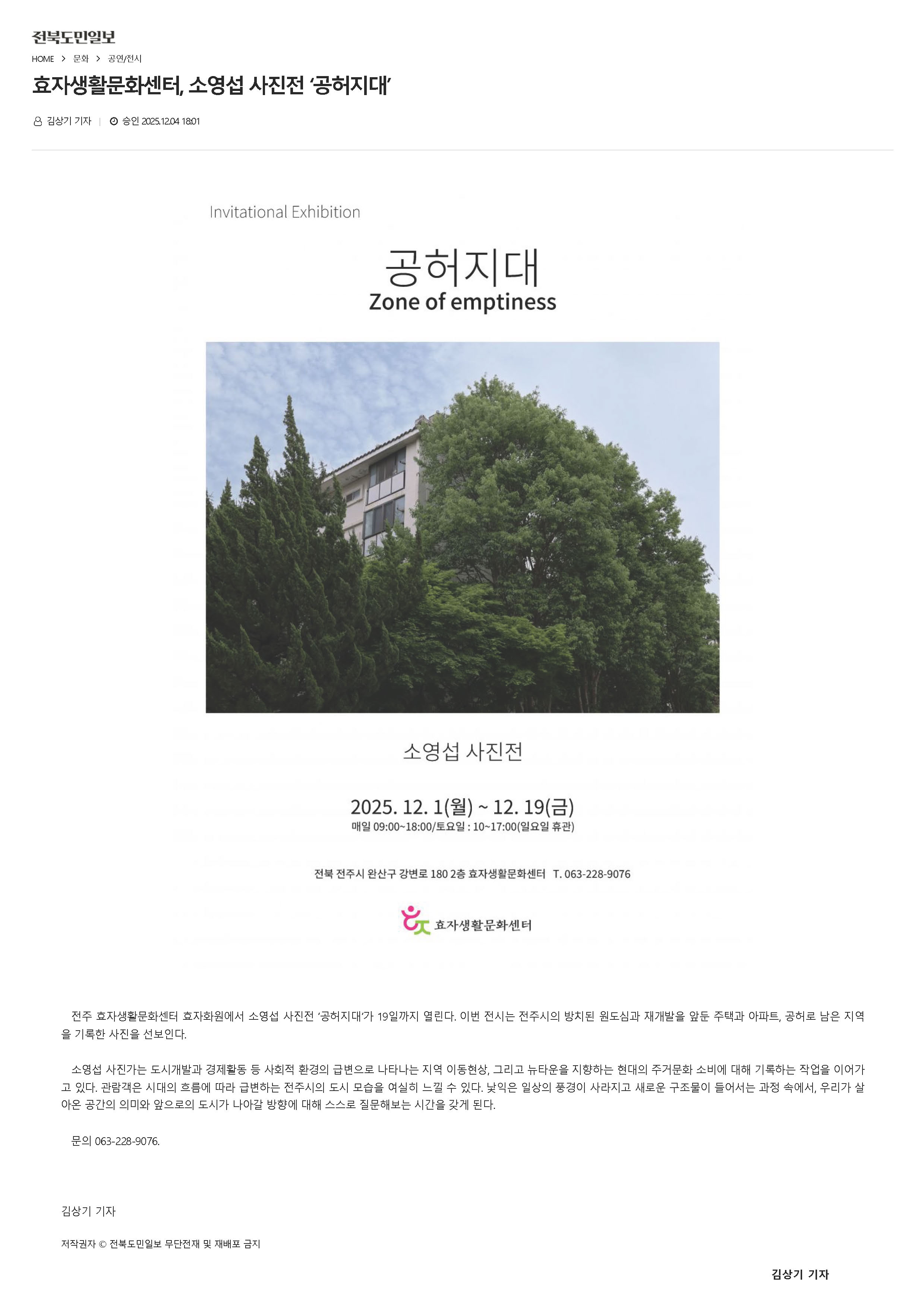 효자생활문화센터, 소영섭 사진전 ‘공허지대’(전북도민)