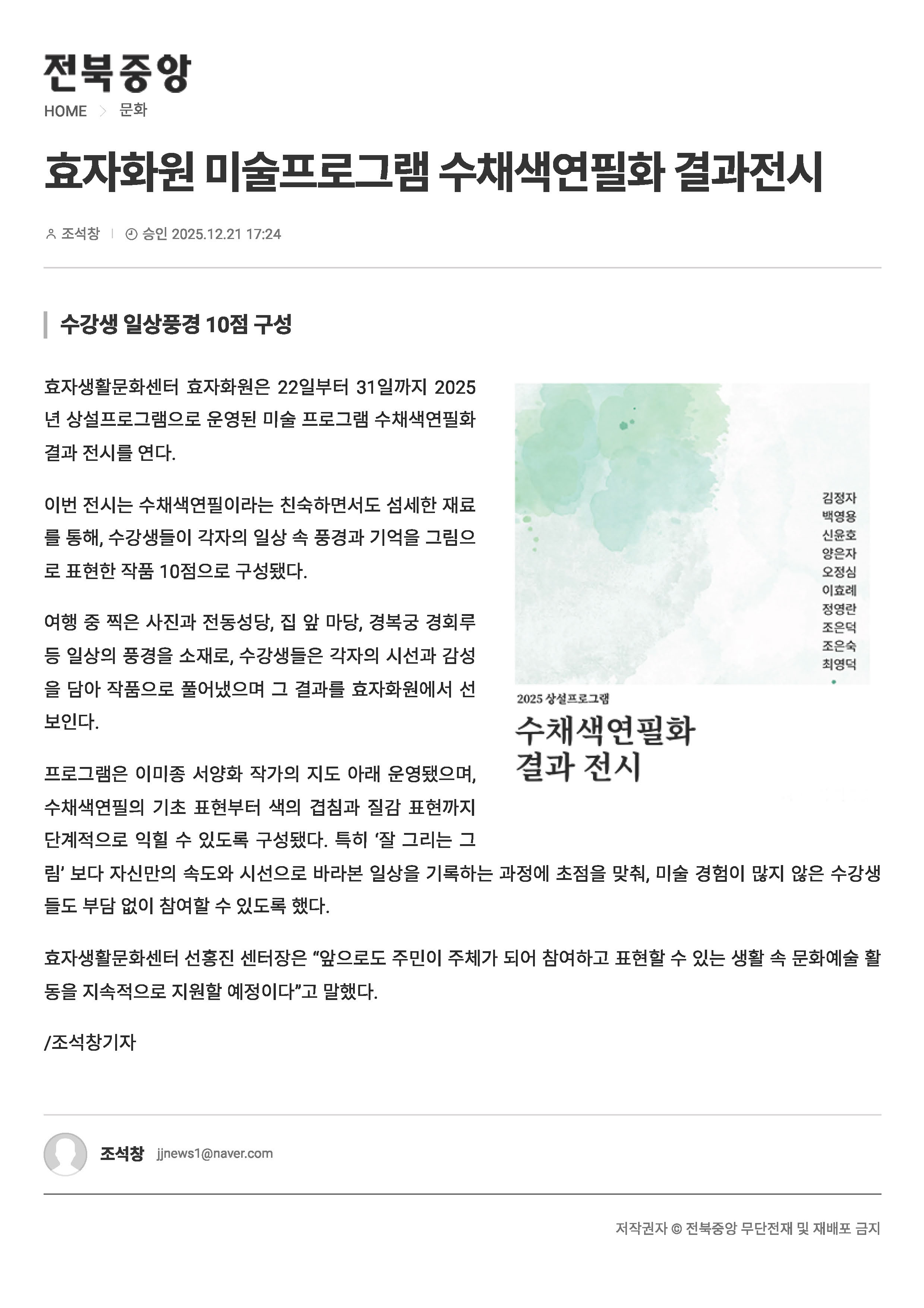 효자화원 미술프로그램 수채색연필화 결과전시(전북중앙)