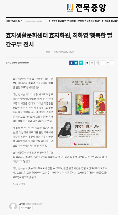 효자생활문화센터 효자화원, 최화영 '행복한 빨간구두' 전시 (전북중앙)