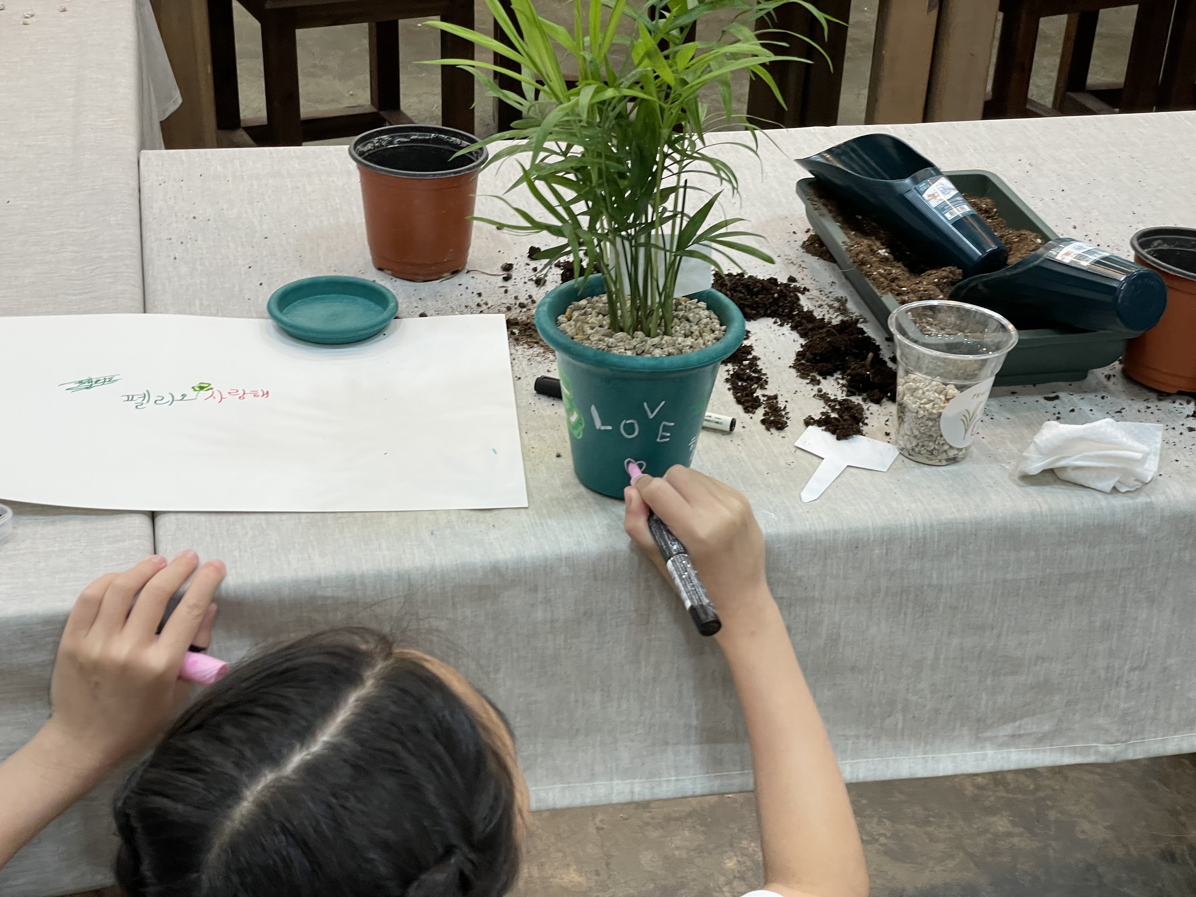 손에 흙을 묻히며 흙을 파고 심는 과정을 통해 아이들이 정서적 안정감을 느낄 수 있었어요.
