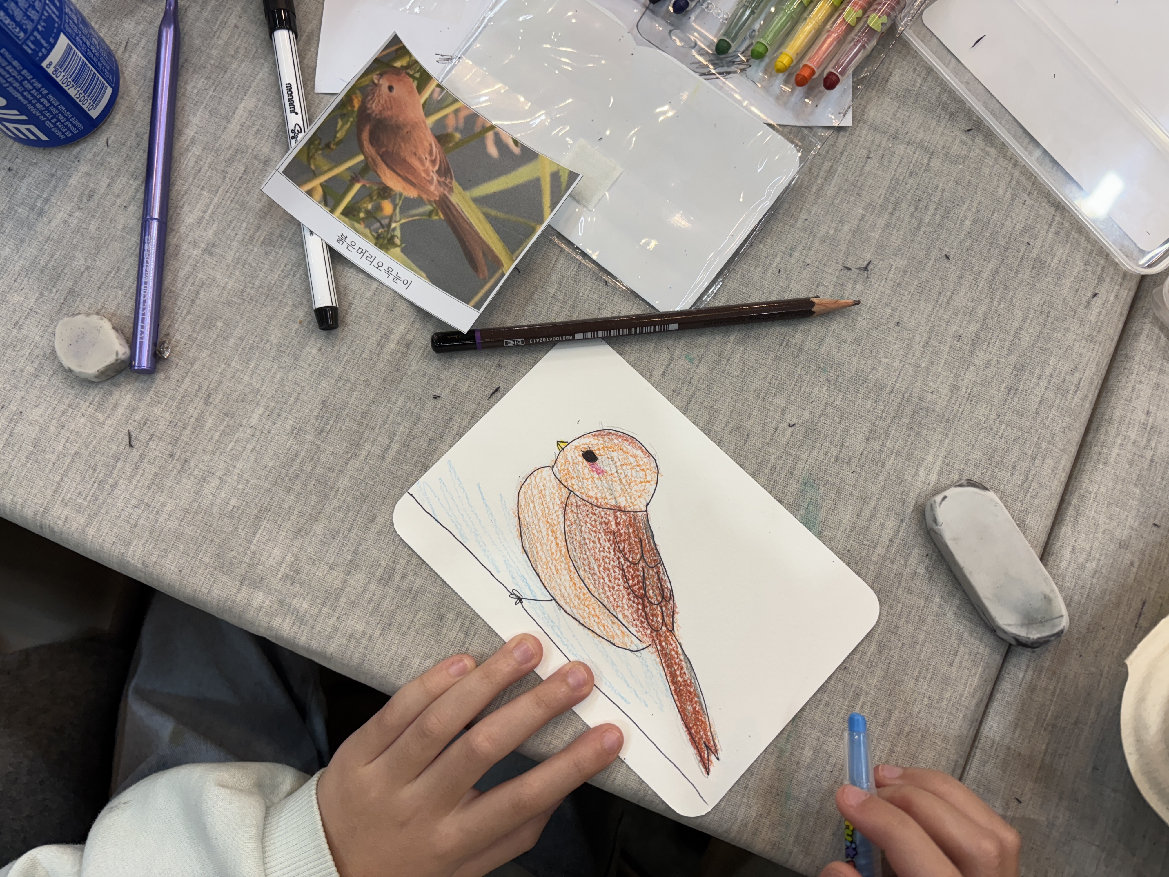 에코프렌즈 3차시에는 지난주 플로깅하며 만난 자연을 다시 떠올리며 세밀화를 그려봤어요