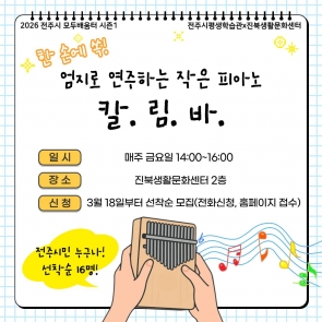 [2026 모두배움터 시즌1] 한 손에 쏙! 엄지로 연주하는 작은 피아노, 칼림바 수강생 ..