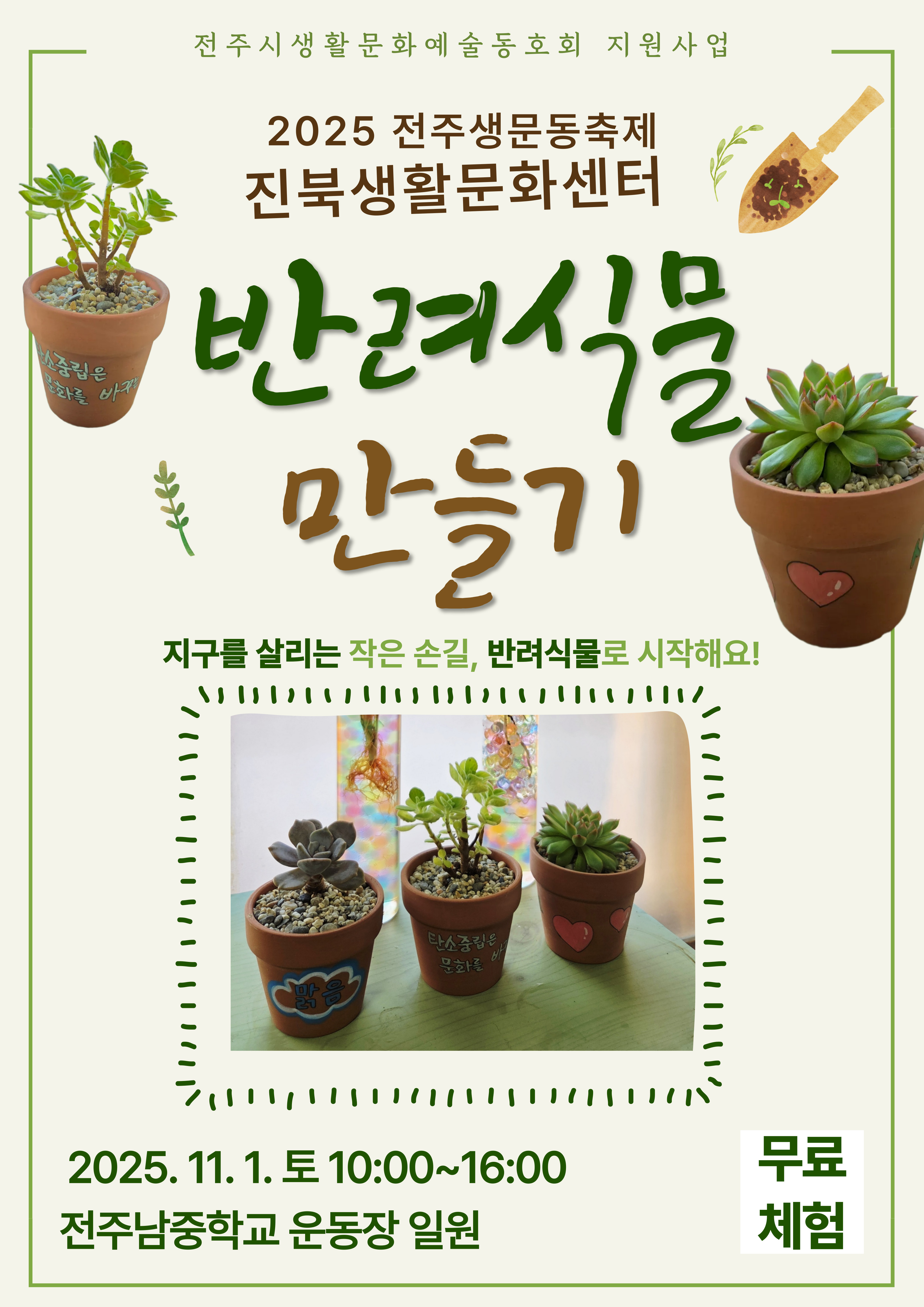 진북생활문화센터는 이번 생문동축제에서 <나만의 반려식물 만들기> 체험부스를 운영합니다.