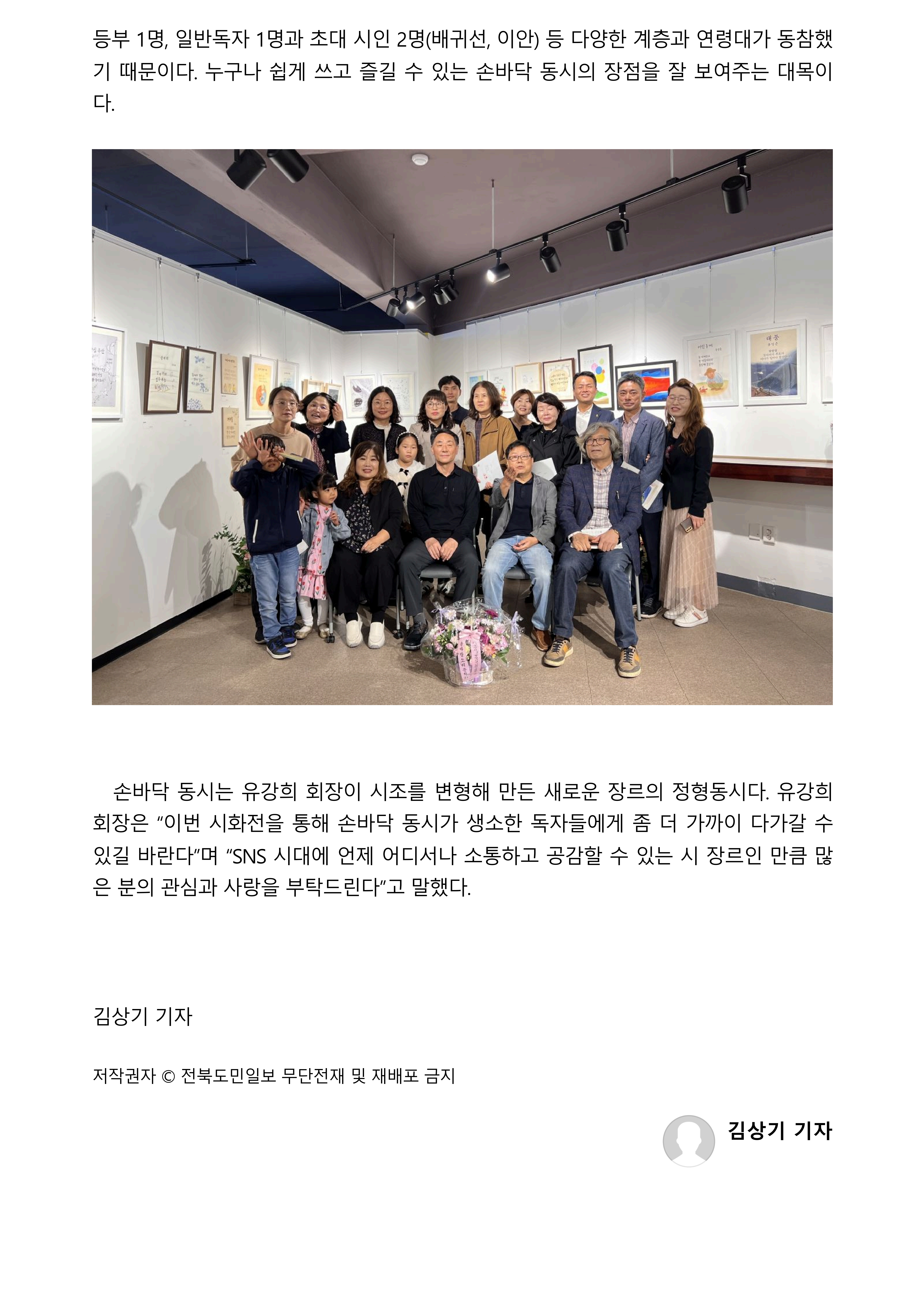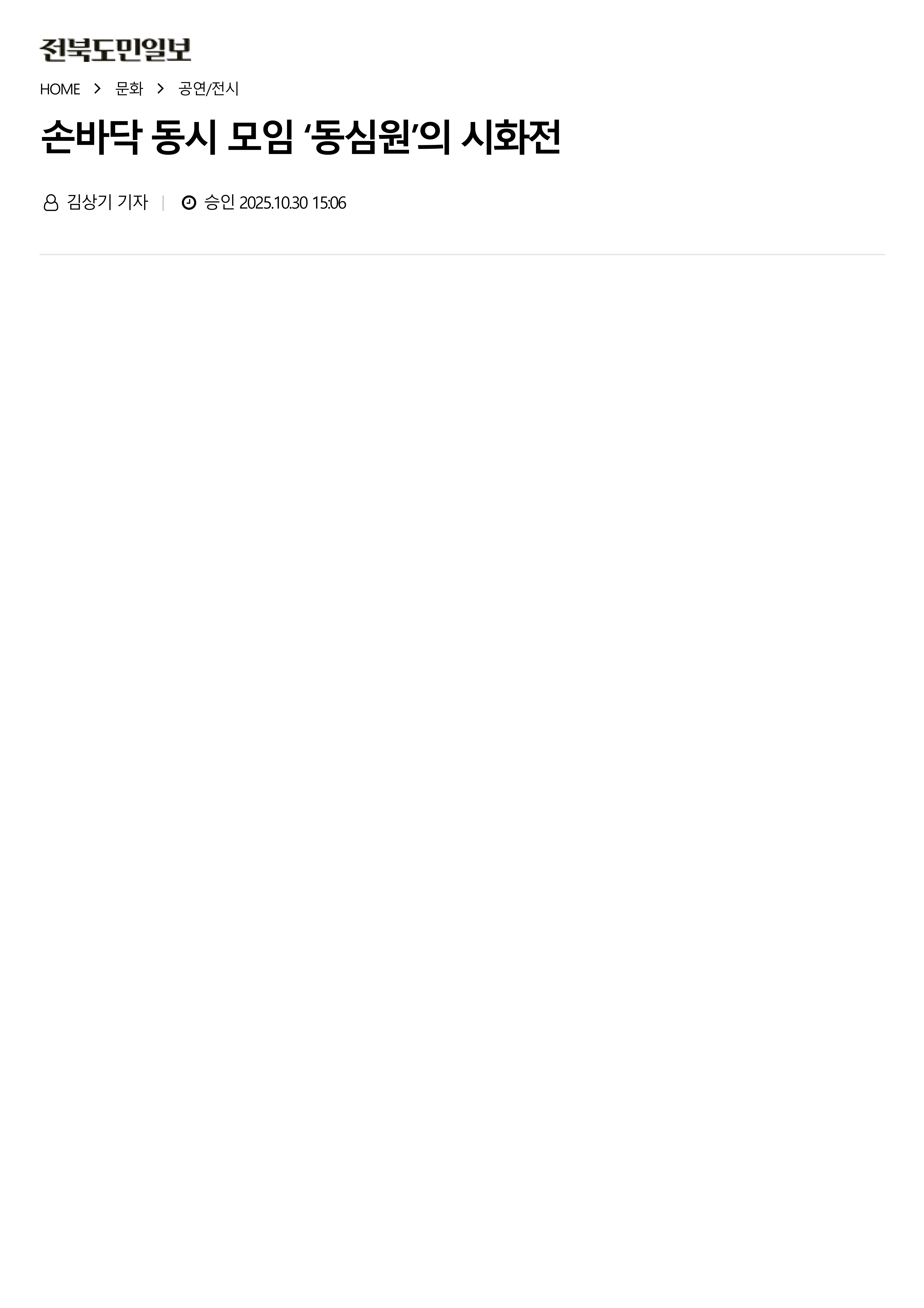전북도민일보: 손바닥 동시 모임 ‘동심원’의 시화전 - 전북도민일보
