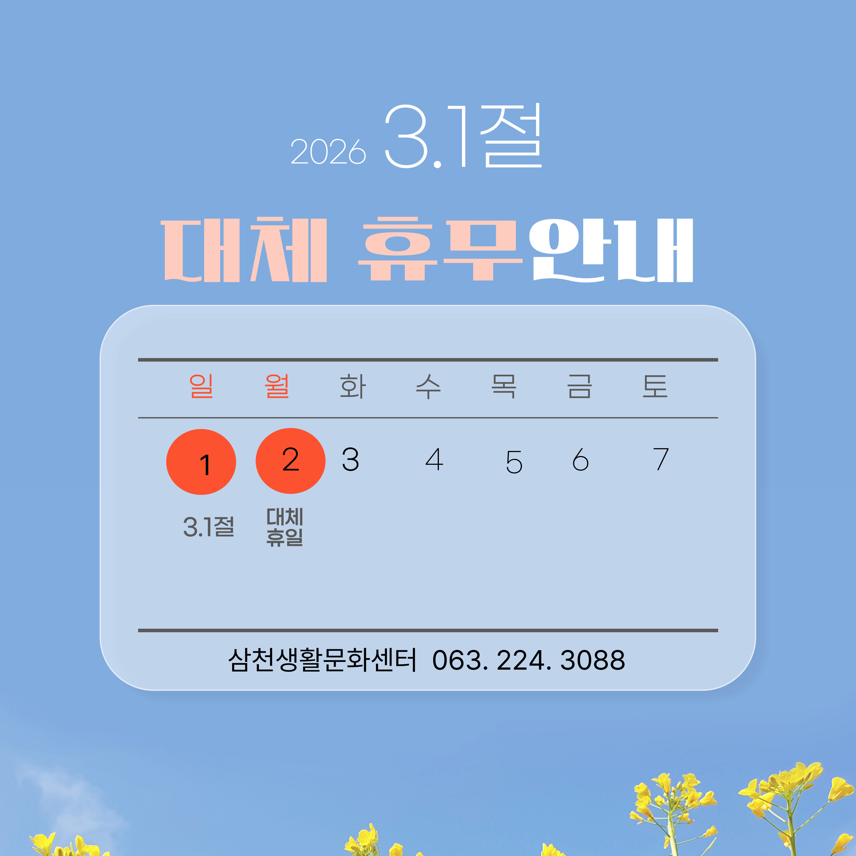 2016년 <107주년> 3.1절 대체 휴무일 안내입니다.