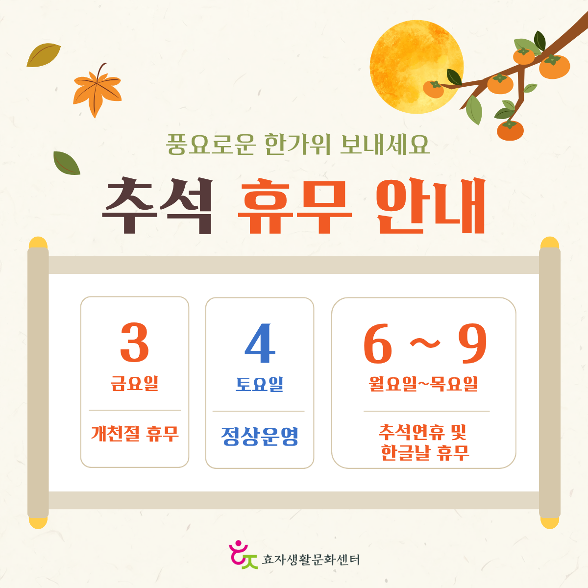 풍요롭고 따뜻한 한가위 보내시길 바랍니다.