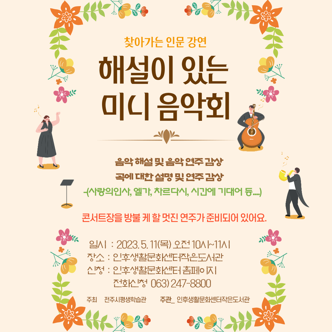 성악가와 해설이 있는 미니음악회에 여러분을 초대합니다.