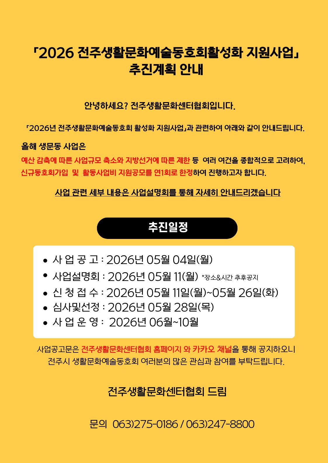 「2026 전주생활문화예술동호회활성화 지원사업」 추진계획 안내