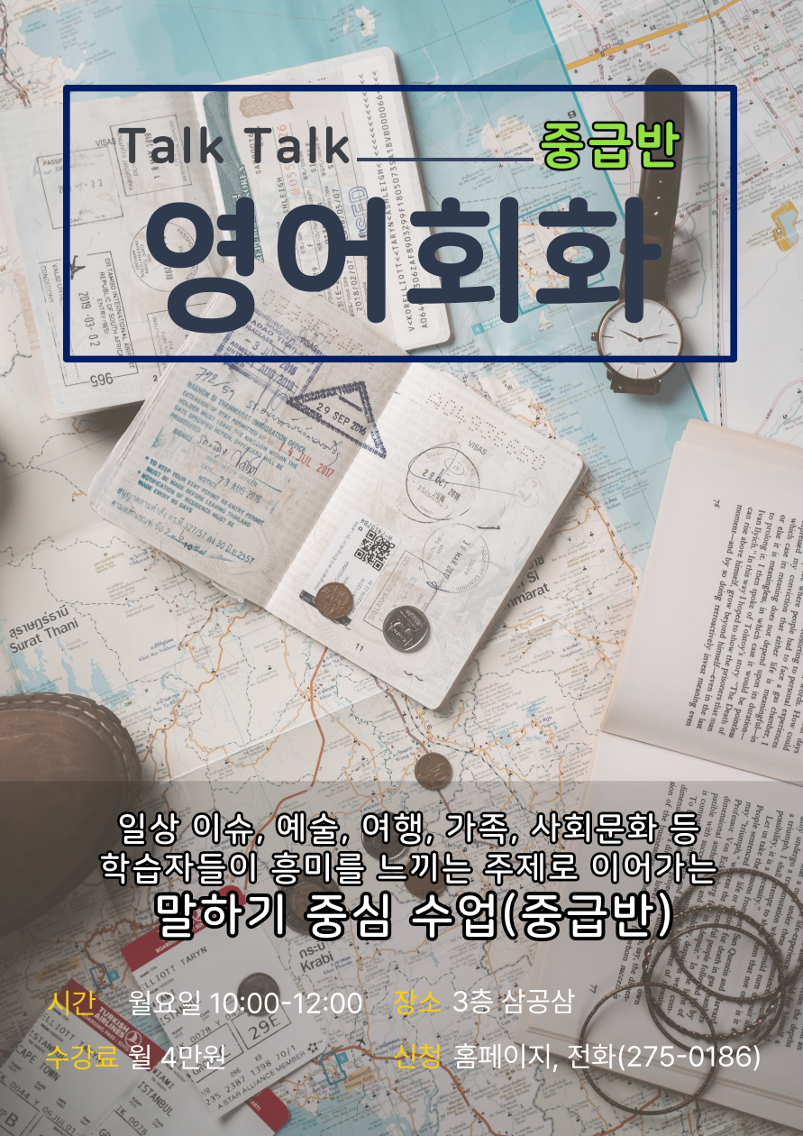 ▣ 내용 : 언제 어디서나 영어로 자신 있게 말할 수 있도록 일상 생활 영어를 중심으로 talk, talk, talk!!!
