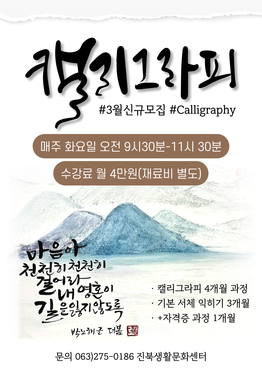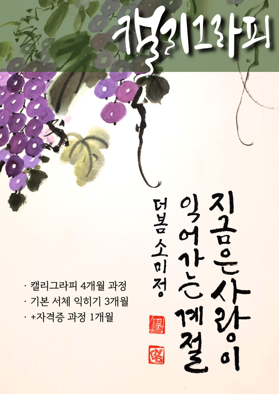 캘리그라피 서체 익히기 3개월 + 자격증 과정 1개월 (포트폴리오 제작) + @