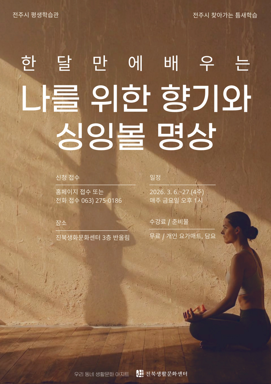 센터 직원과 회원들을 위한 활력 증진 프로젝트, <나를 위한 향기와 싱잉볼 명상>이 3월 6일부터 시작됩니다.