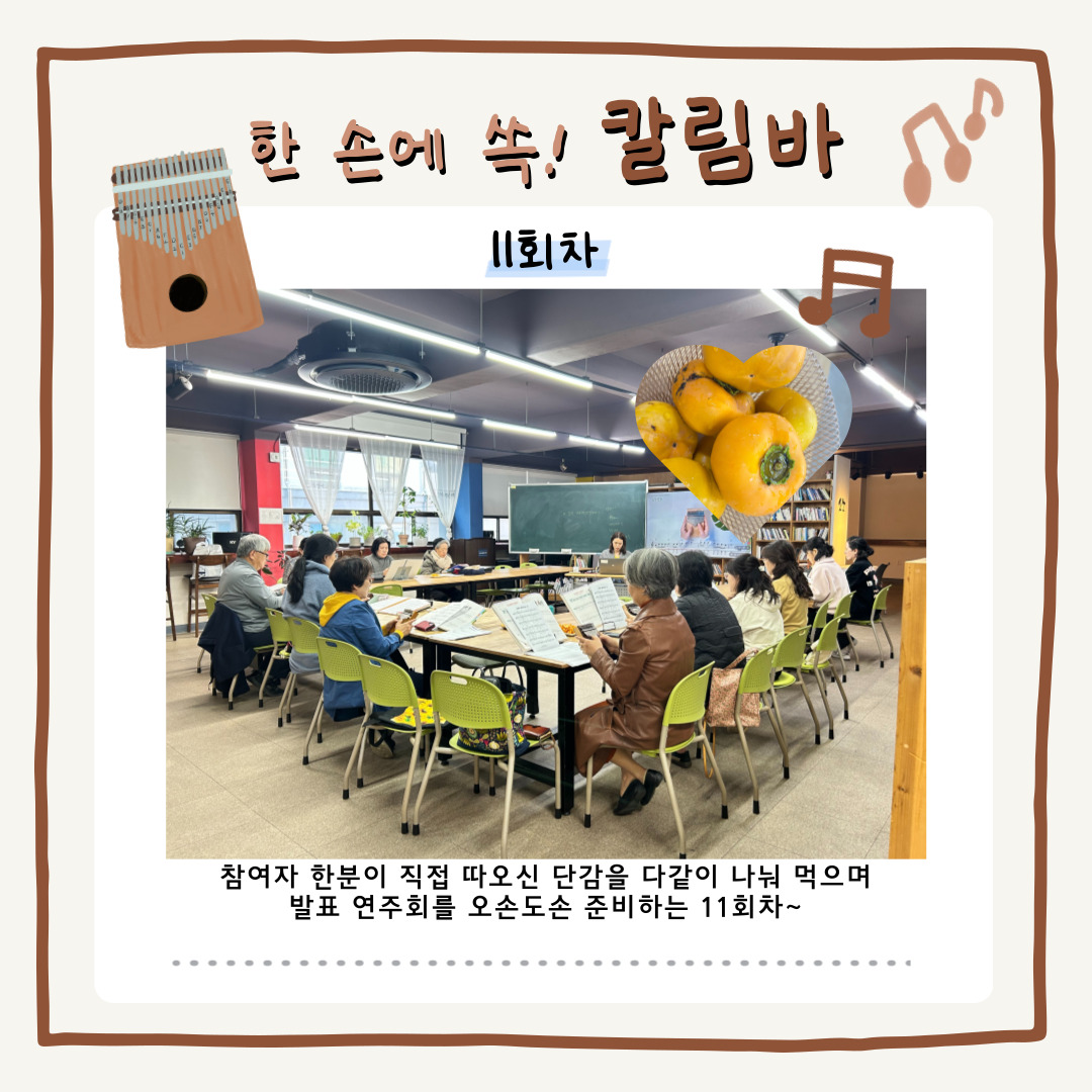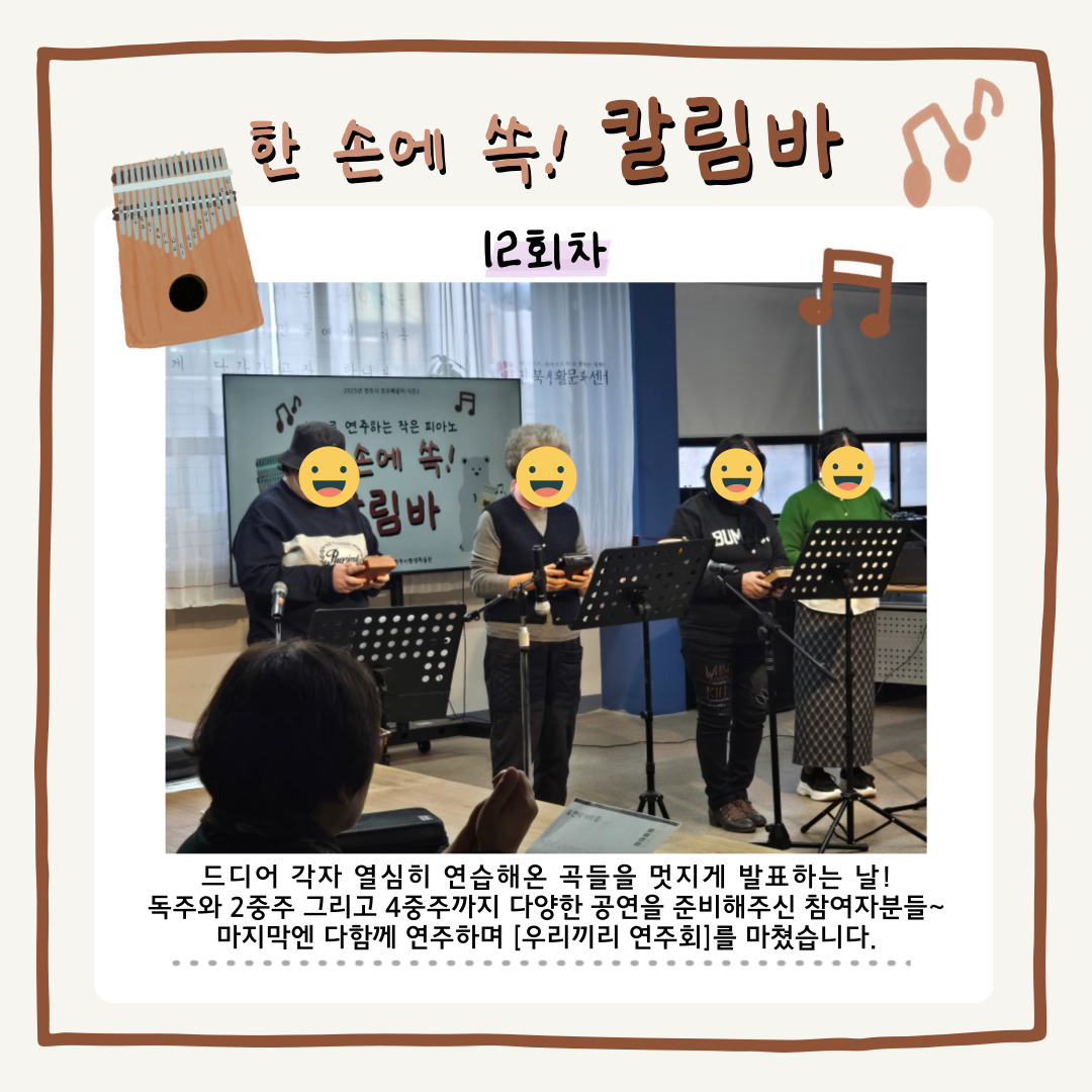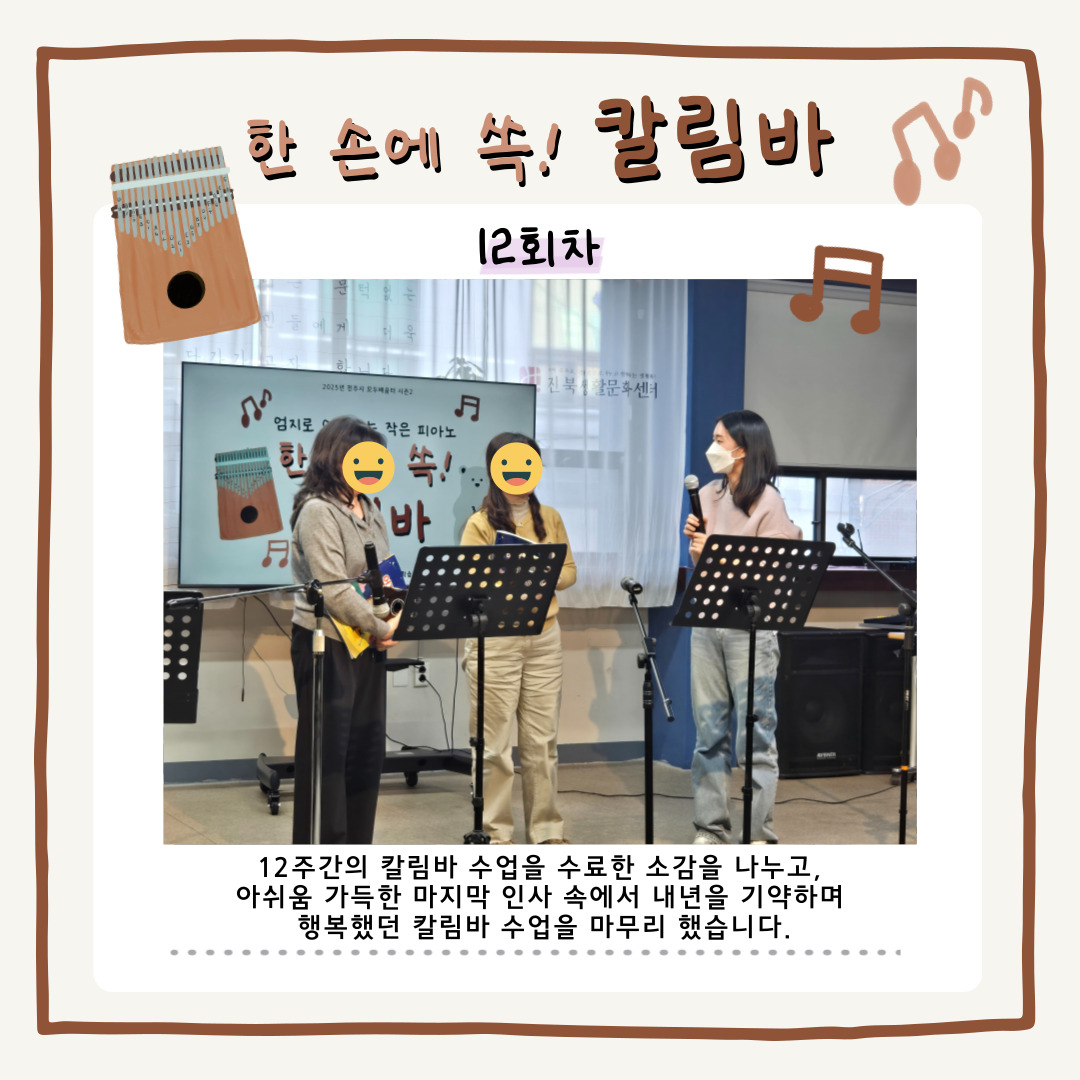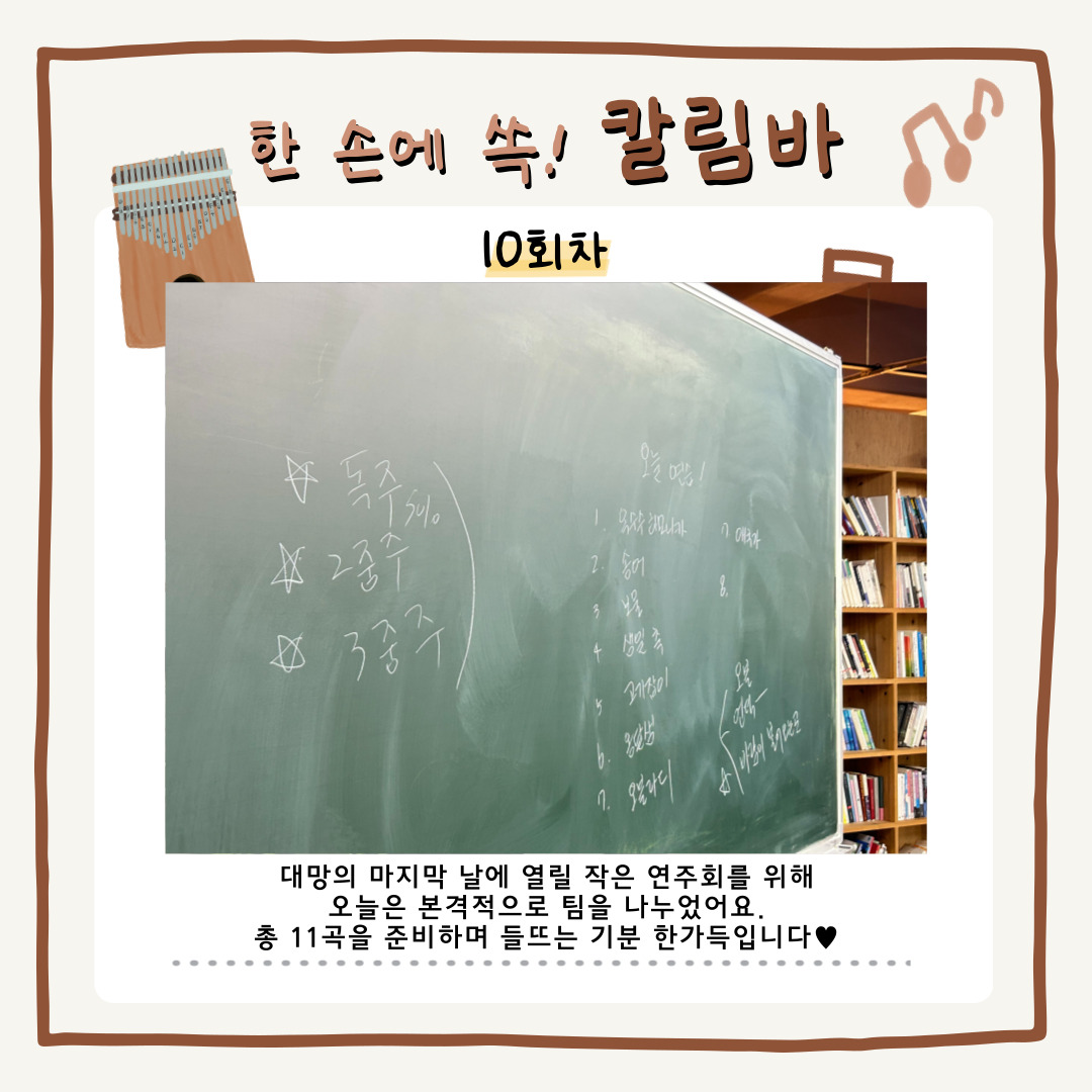 드디어 12주간 함께한 칼림바 수업의 마지막 시간이 찾아왔습니다.