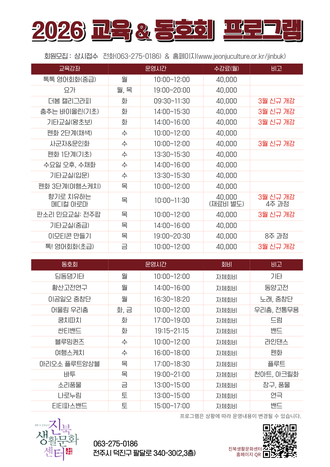 2026년, 진북생활문화센터가 준비한 프로그램과 함께 즐거운 일상 만들기 시작해 볼까요?