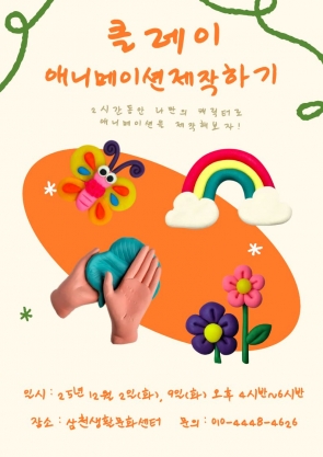 [모집] 초등학생을 위한 원데이클래스 '클레이 애니메이션 제작하기'