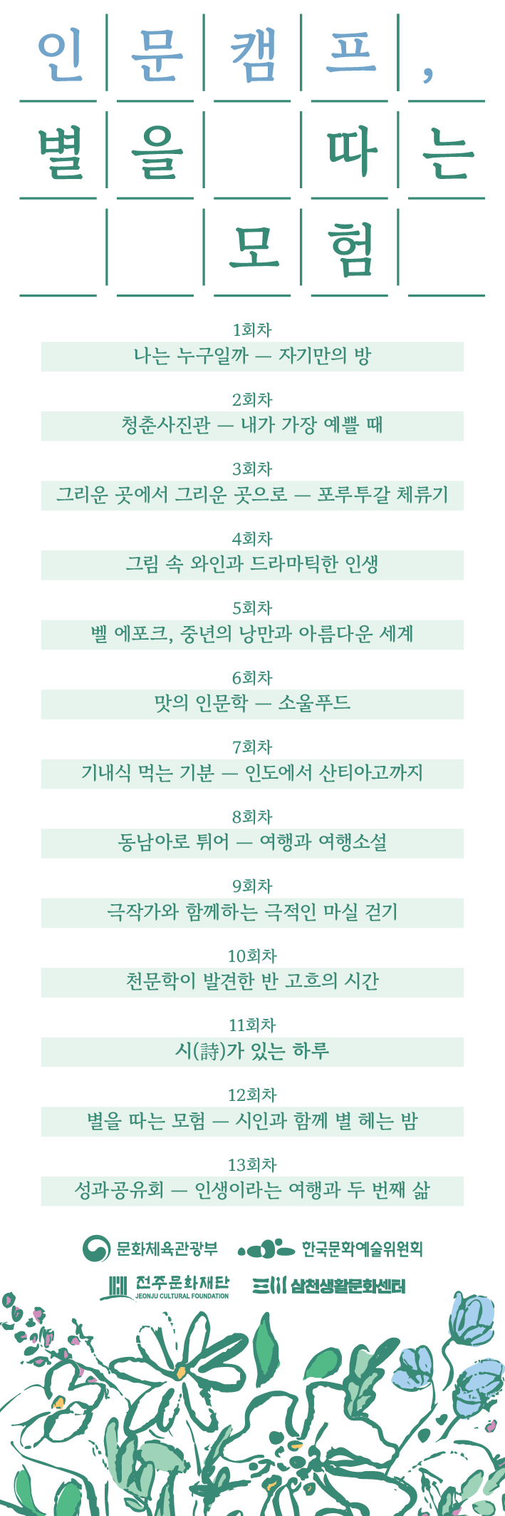 ♣ 활동 내용 : 다양한 인문체험 (인문강연, 문학, 사진인문, 미술, 음식, 탐방, 별자리 관측 등)