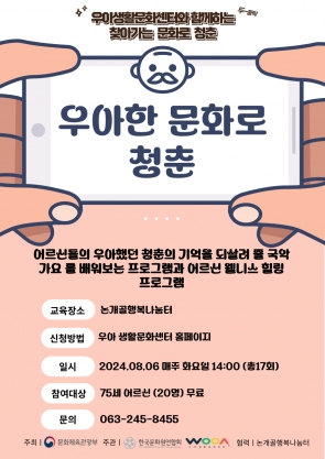 전주시 우아생활문화센터가 운영하고 장수군 논개골행복나눔터가 협력하는 ‘우아한문화로청춘’ 팀이 문화체육관광부가 주최하고 한국문화원연합회가 주관한 2025 실버문화페스티벌에서 ..